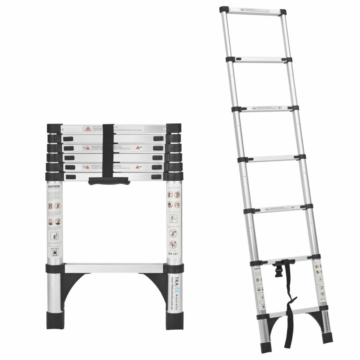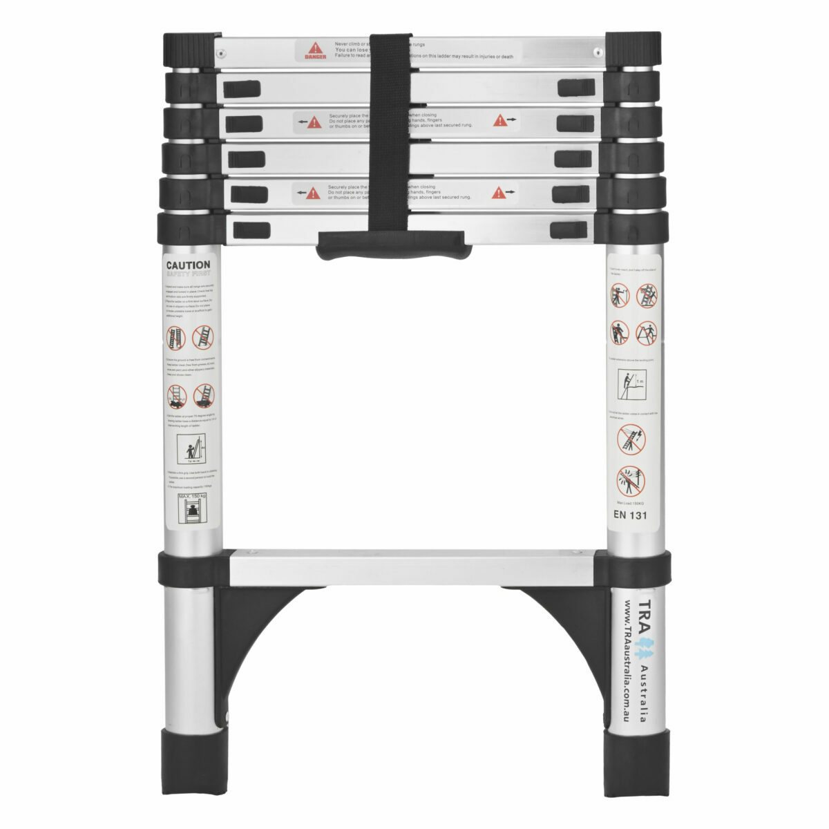 TRA’s 2.0m Portable telescopic ladder with carry bag is built with a robust aluminium alloy and has a safe working load limit of 150kg, making it ideal for demanding jobs. This ladder features seven individual rungs, each opening and closing in 30 cm increments, allowing you to adjust it to the perfect height for any task.