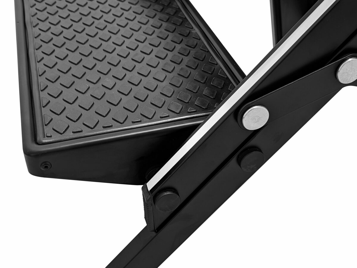 The Black double folding portable step is a lightweight and sturdy solution for your outdoor adventures. With a strong aluminium frame, this step is designed to hold up to 200kg, making it suitable for higher off-road caravans and camping setups. The anti-slip tread provides added safety, ensuring you can confidently step onto the platform. When not in use, this step conveniently folds away flat for easy storage, making it a practical choice for travel.